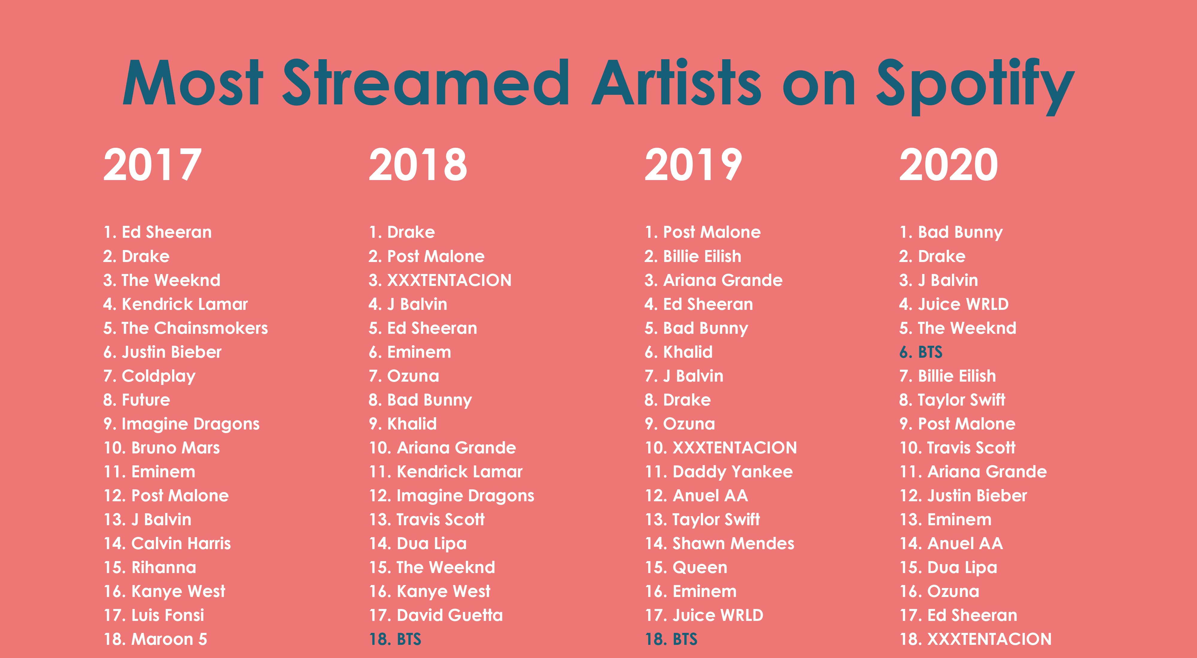 Bts Graphs On Twitter Most Streamed Artists On Spotify From 2017 To 2020 Bts Btsarmy Spotifywrapped Spotify Bts Twt Https T Co 0dv5mm7kdf Twitter